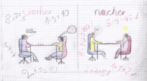 „März 1994, 2. Klasse: Anne-Sophie war 9 Jahre jung und wies enorme Berührungsängste mit Zahlen und Mengen auf. Es folgten 2 Jahre Therapie, in denen ihr mathematisches Denken verständnisvoll und fachmännisch umstrukturiert wurde. Sie hat Selbstvertrauen aufgebaut, ihr Selbstwertgefühl wurde gestärkt, sie konnte am Schulunterricht unauffällig teilnehmen und erfolgreich mit dem Abitur abschließen. Heute ist sie 20 Jahre alt und studiert Fremdsprachen im Ausland. Obwohl sie Zahlen und Mengen immer noch bewusst mit Respekt angeht, findet sie sich in der Welt sehr gut zurecht mit der Gewissheit, dass die Therapie unentbehrlich war.“